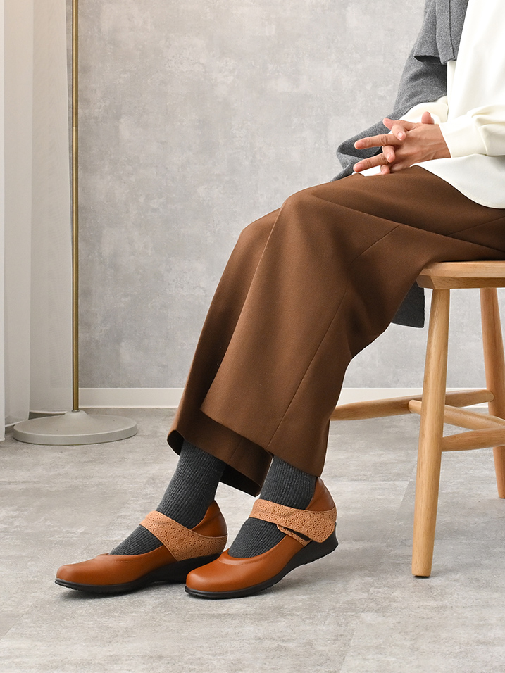 「10030 キャメルフルール」は、女性らしい足元を楽しみたい方の、「毎日使っても飽きない」「合わせやすい」「歩きやすい」を叶える一足です。