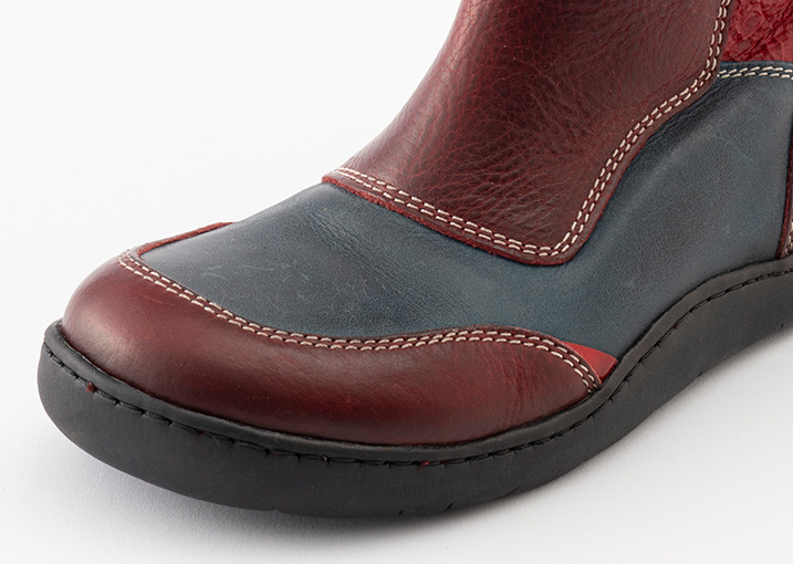 足を支える部分には厚みのある牛革を、筒の部分には薄く柔らかいシープレザーを使用し、履き心地と耐久性を考えたデザインになっています。