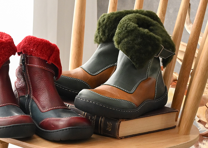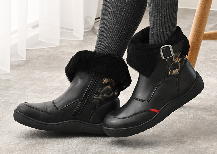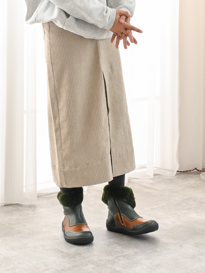 メンズライクな雰囲気とムートンの可愛らしさがバランスよく馴染み、女性の足元を引き立てます。