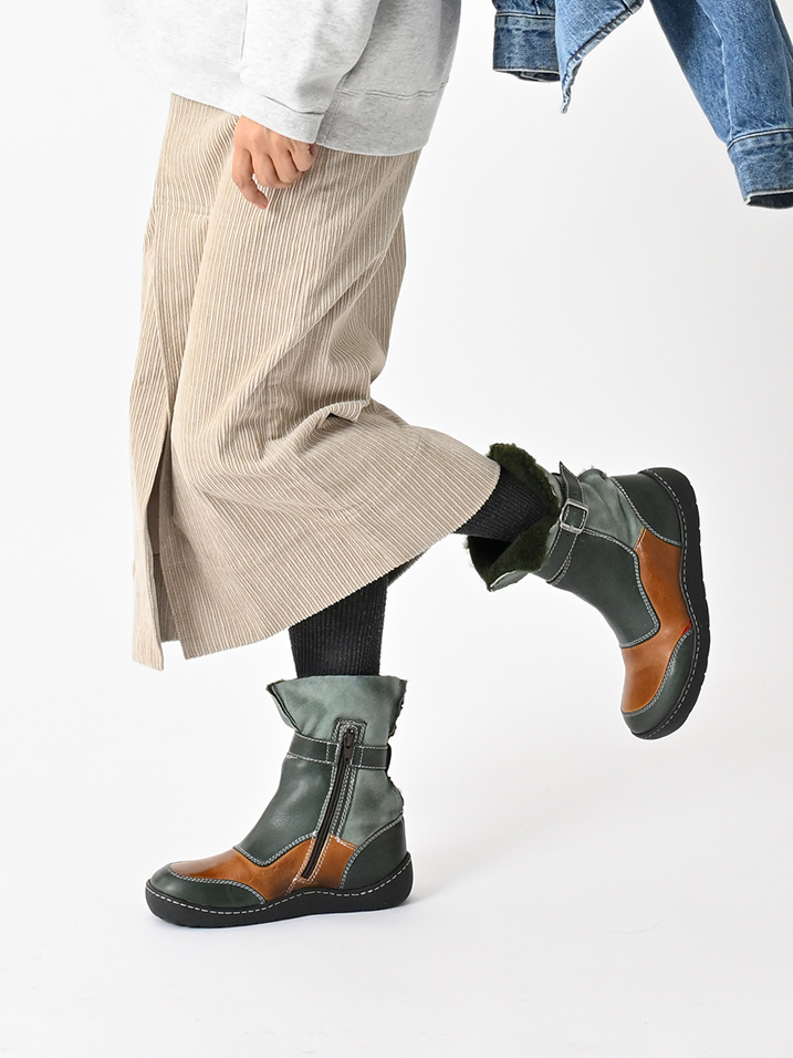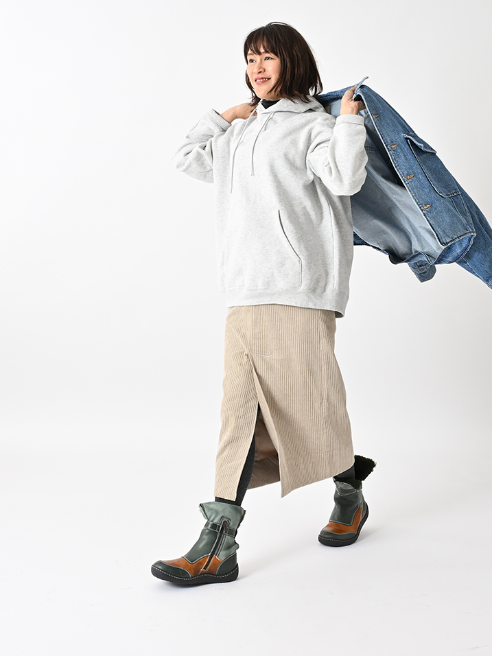 ナチュラルなカラーリングなので、個性がありつつもコーディネートもしやすいブーツです。