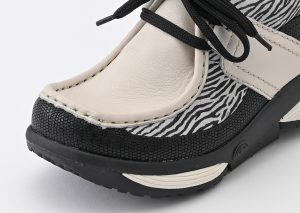 毛並みを感じさせるゼブラ柄のプリントレザーと、独特な光沢がある型押しのレザー。