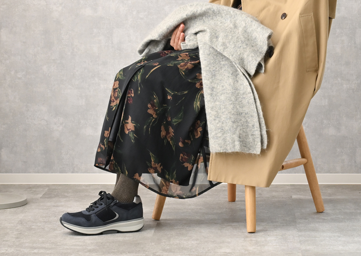 デニムやチノパンにはもちろん、きれいめなワンピースやスカートスタイルにもすんなり馴染む、ネイビーならではの汎用性の高さも魅力。この一足が、あなたの日常をより豊かで、より美しいものへと誘います。