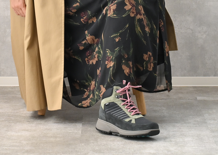 カジュアルなアウトドアスタイルはもちろん、上品なスカートやコートと合わせて、大人の外し技が光るミックススタイルを楽しんでみるのはもおすすめです。天候を気にせずおしゃれを楽しめる、まさに理想的な足元を叶えてくれる一足です。