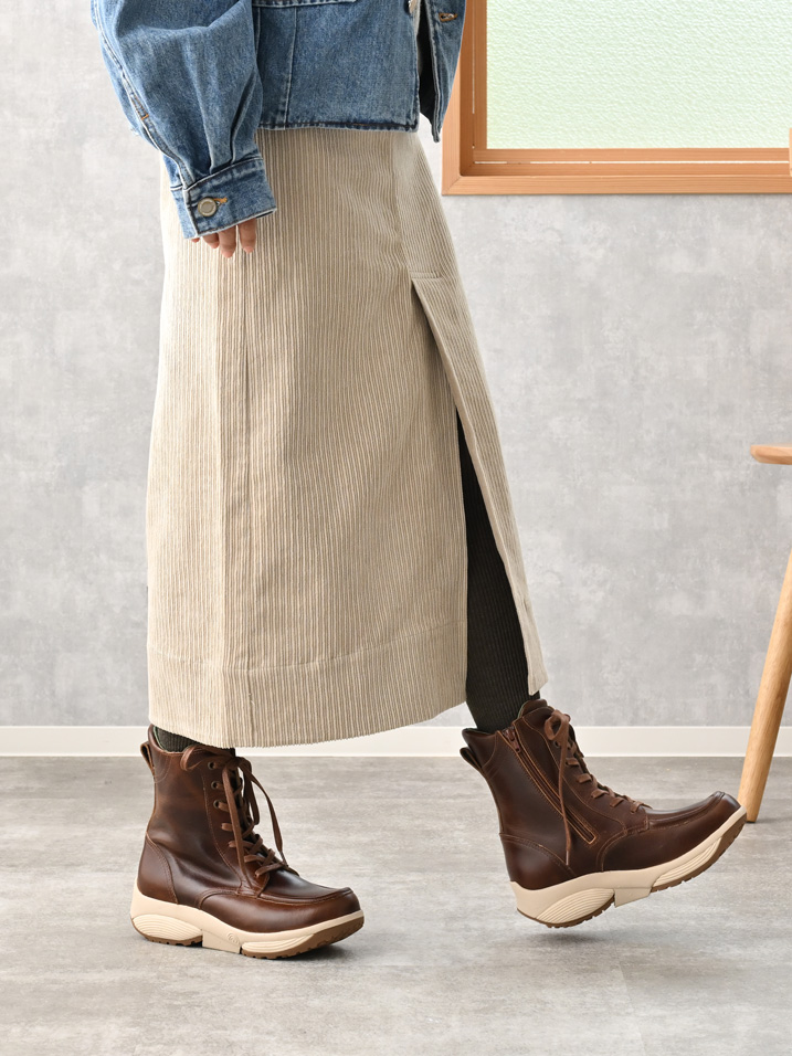 ミドル丈のブーツは履くだけであたたかく、防寒にも役立ちます。季節感あるコーディネートも楽しめますよ。