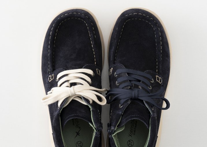 この靴にはネイビーとホワイトの替え紐の2種の紐が付属しています。