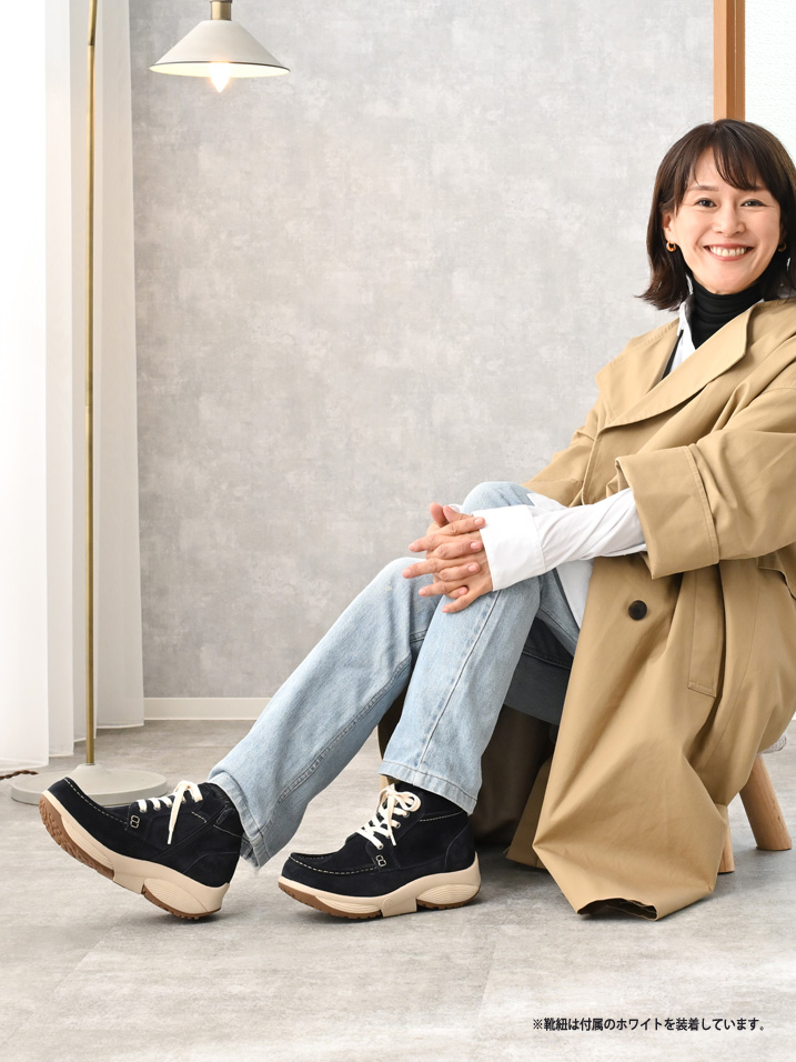 スエードの柔らかな素材感と、ハイカットで足首をしっかりホールドしてくれる履き心地が気に入っています。足に馴染むのも比較的早かったように思います。幅広な私でも快適に履け嬉しいです。