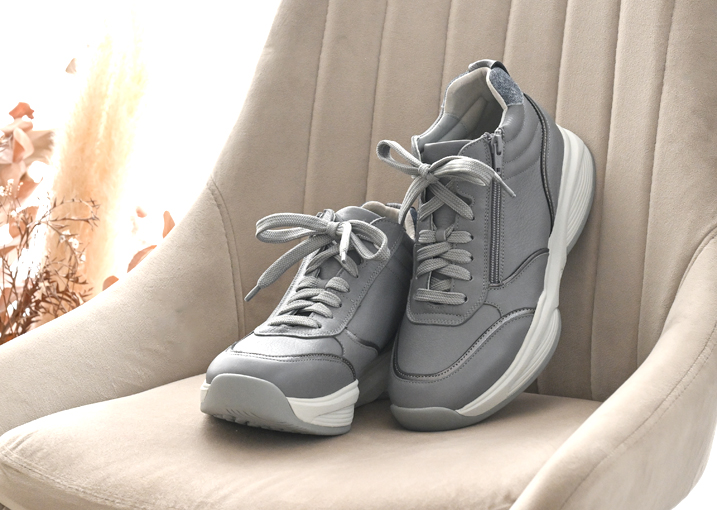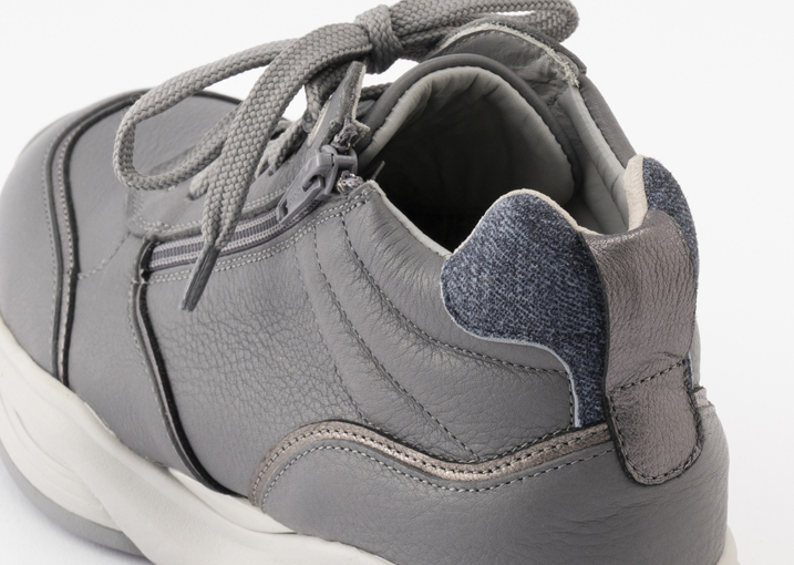 どんなコーディネートにも自然に馴染むグレーは、白の軽やかさと黒の重厚感を併せ持っています。これまで挑戦したことのないカラーをお探しの方に、ぜひお試しいただきたい一足です。