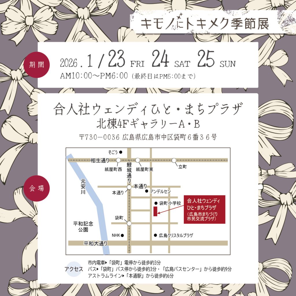 今年もやしまグループ主催の広島最大級のカジュアル着物イベント「キモノにトキメク季節展」に参加させていただきます!