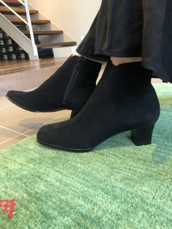 スクエアトウで指先の圧迫感がなく、4.5㎝のヒールで足に負担が少なく足が綺麗に見えるショートブーツです。