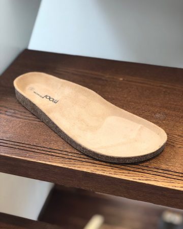 足裏のアーチを支えるコルクインソール内蔵です。よくあるスリッパは、すり足になりやすく足を使わない歩行に。