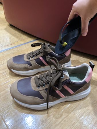 こちらのモデルは外側にファスナーが付いており、脱ぎ履きが多い場面でもすぐに着脱が出来て楽ちんです♬