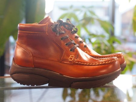 エイジング楽しみなコニャックレザーにウォーキングブーツには珍しい長めの丈も魅力。
