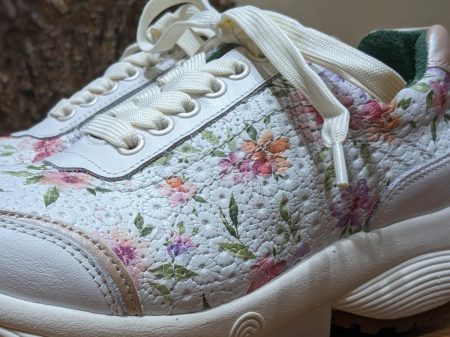 こちらは、白をベースに可憐な花柄のプリントレザーを合わせたデザイン。