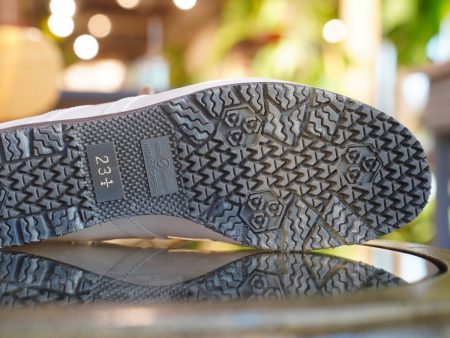 紐がないデザインですが、甲の押さえがきいているためフィット感が良く、足が前滑りしにくいモデルです。