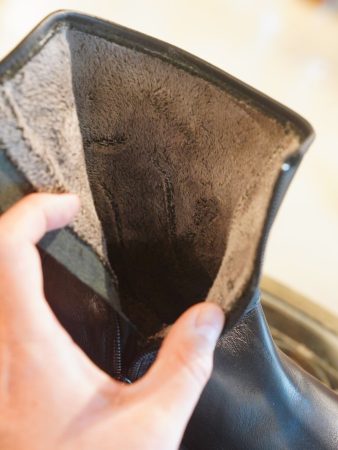 レザーブーツですが、革内部の繊維層にまで防水加工されていて 高い防水・防汚効果が期待できます。