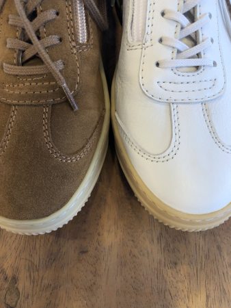 色は白とタバコの2色展開ですが、よりクラシックな雰囲気を楽しめるタバコをおススメします♪(ちなみに白色はスムースレザーなので、きれい目にもフィットすると思います!どちらも捨てがたいっ)