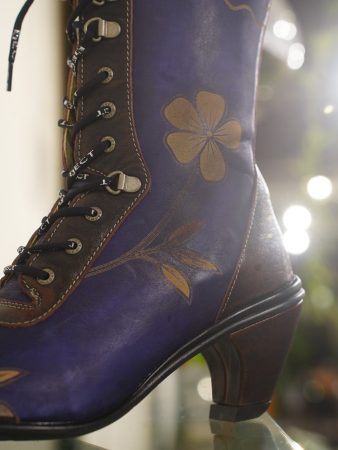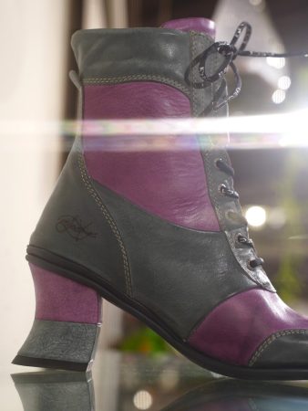 こちらは柔らかな革の風合いが魅力的なヒールブーツ。足首周りに上品なパール感のある革をライン状にあしらい、華やかな印象です。