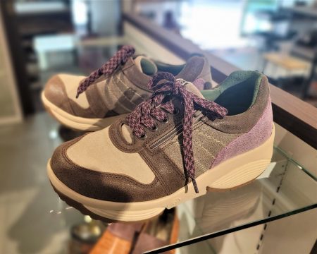 『ブラウン/ピンク』は、秋の風情を感じるようなブラウンとピンクのコンビ色で靴ひもにもワンポイント加え、オシャレな1足に。